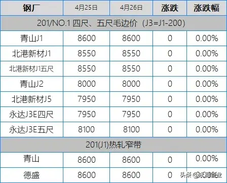 午后,304吆喝轉(zhuǎn)弱后,201開始跟隨各種搞氛圍,多是高位報(bào)價(jià)下調(diào)20-30限量接單,而不久就接滿回歸調(diào)回高位,各個(gè)都在限量,各種好似都成交很好,但是實(shí)際接了多少可能只有自己知道。今日現(xiàn)貨市場含稅價(jià)格:J1: 宏旺、北港、誠德8850-9000基;J2、J5: 8250-8400基。