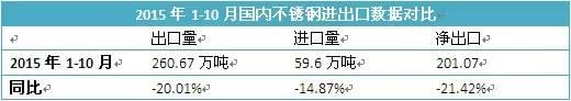 在外界對華316L不銹鋼圓管反傾銷事件頻干擾的境況下,國內不銹鋼出口量隨之下降,其中2015年1-10月,國內316L不銹鋼凈出口量同比下降21.42%。對于凈出口數據的下降,主力原因當然是來自歐洲方面的影響,但我們也要注意到歐洲以外的區(qū)域量同比也出現(xiàn)了不同幅度的下降,因此,可以說國內的不銹鋼的出口境遇的不利因素不僅僅是區(qū)域化的,更是全面化的,這樣的全面化的不利影響在未來會進一步加劇,尤其是國內于東南亞地區(qū)投資的不銹鋼投產以后。