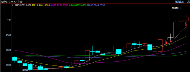 一萬大關(guān),轉(zhuǎn)眼間得而復(fù)失、失而復(fù)得,相信如此重要的整數(shù)關(guān)口是不太可能輕易奪取的,多空雙方必將圍繞萬點大關(guān)展開肉搏。倫鎳已開啟“心電圖”模式,我們做不銹鋼的可要系好安全帶哦!