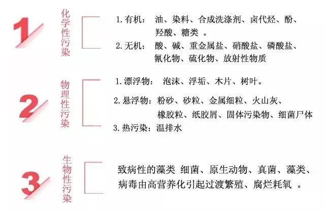 2、化學(xué)污染:當(dāng)水體受到未經(jīng)凈化處理的各種工業(yè)廢水、廢渣的污染并達(dá)到一定濃度時(shí),飲用或食用了這種水或含有這種水的食物時(shí),可導(dǎo)致各種急、慢性中毒,甚至引起癌癥。