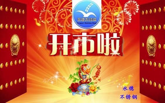 2015年2月26日,佛山市永穗不銹鋼有限公司開(kāi)市啦!新的一年,佛山市永穗不銹鋼有限公司將繼續(xù)為廣大客戶提供優(yōu)質(zhì)優(yōu)價(jià)的不銹鋼產(chǎn)品,不設(shè)低起訂量!現(xiàn)貨批發(fā)!歡迎新老客戶惠顧!新春有驚喜!豪禮送不停!